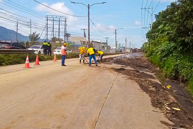 Un grupo de limpieza llevó a cabo labores para remover el material que se encontraba sobre la cinta asfáltica, restableciendo la circulación vehicular en esta carretera de gran importancia para la movilidad del país.