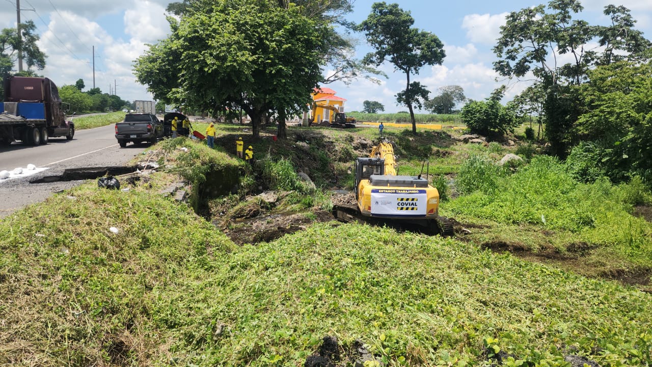 Las lluvias de la temporada han vuelto a causar complicaciones en la CA-2 Occidente. En el km 81.6, jurisdicción de Siquinalá, Escuintla, el colapso de tubería transversal provocó daños en la carretera, situación que está siendo atendida de inmediato por Covial con maquinaria y personal.