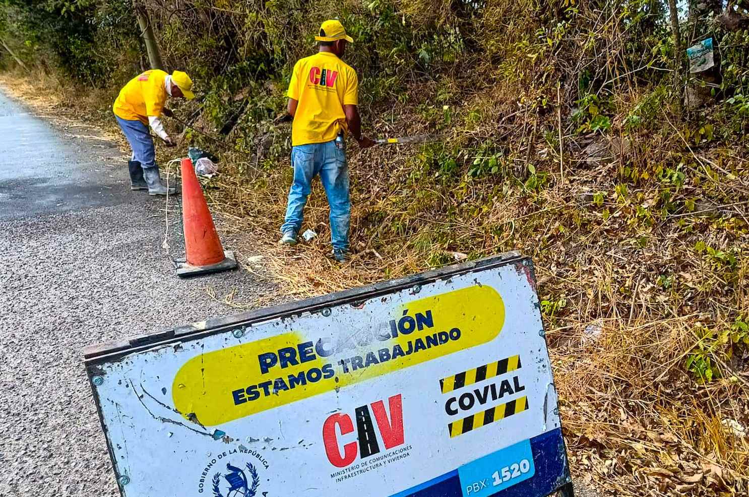 Las cuadrillas realizan labores de limpieza y mantenimiento rutinario en la ruta que conecta la cabecera municipal de Agua Blanca con Cerro de Pinos, en el departamento de Jutiapa, una vía para la movilidad de personas, el transporte local y la economía regional.