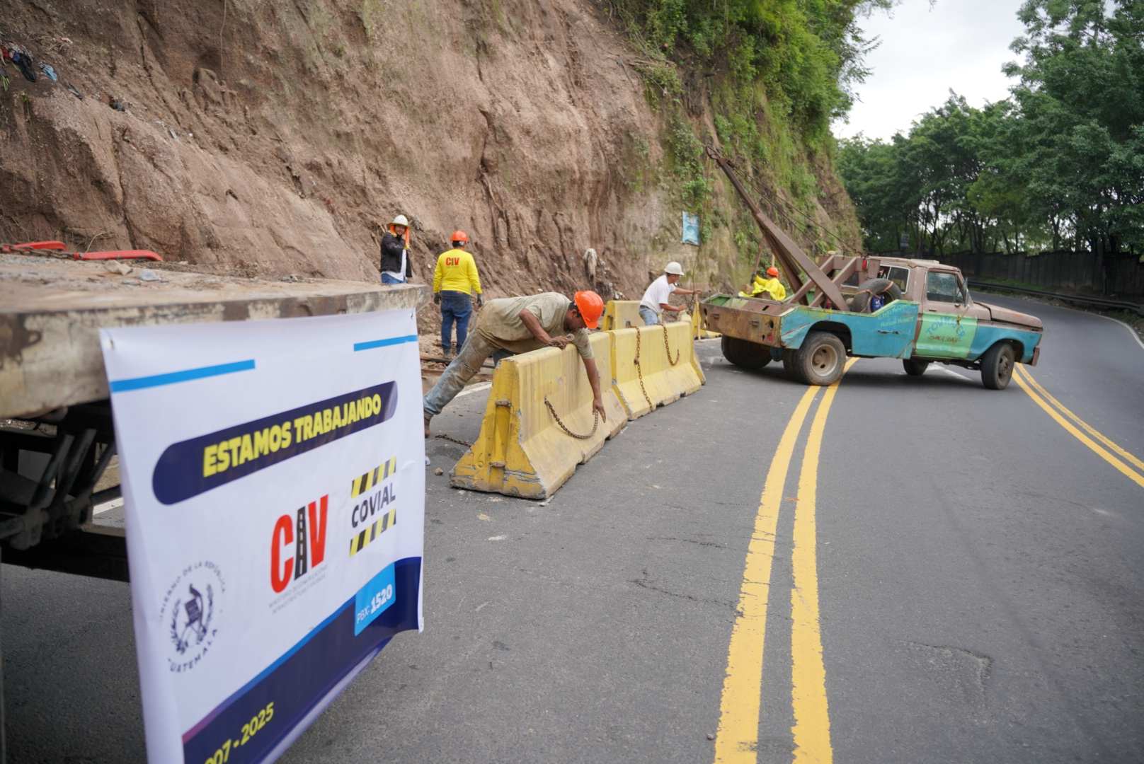 La Unidad Ejecutora de Conservación Vial (Covial) comenzó este martes 7 de octubre la protección de la montaña en el kilómetro 11.5 de la ruta RD-GUA-01-01, punto que conecta la Avenida Hincapié, zona 13 de la capital, con la aldea Boca del Monte, en Villa Canales.