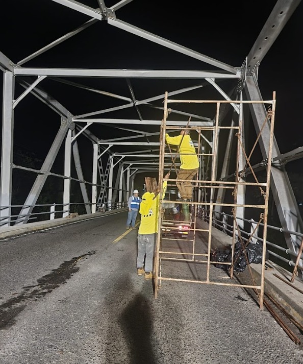 La obra forma parte de la recuperación de puentes del Plan Conecta 2025. El pasado fin de semana se ejecutaron trabajos nocturnos para la instalación de torres de apuntalamiento en la parte inferior del puente, lo cual mejora su capacidad de carga y estabilidad.