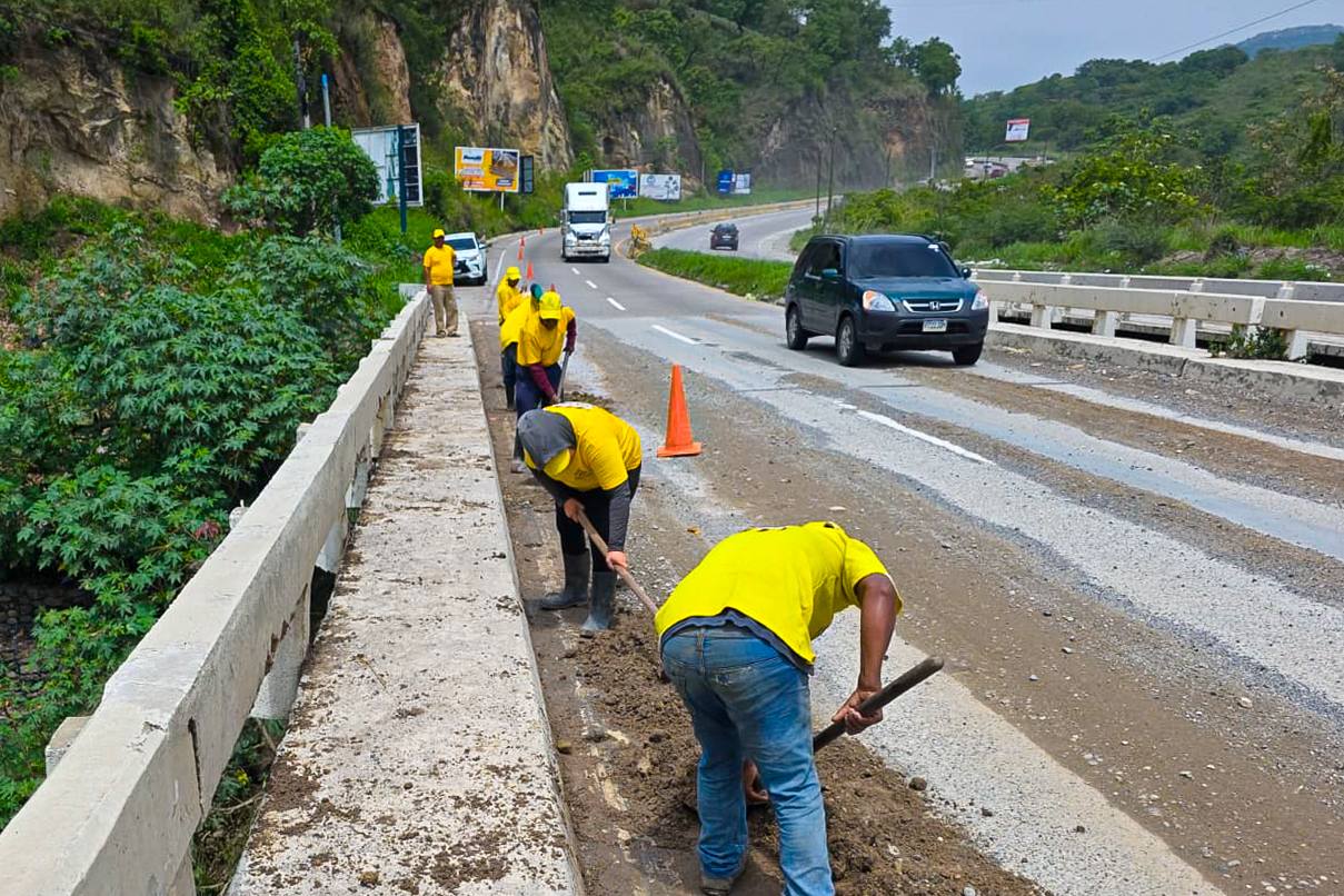 COVIAL limpia puente San Juan en la CA-9 Norte para garantizar seguridad vial y prevenir accidentes