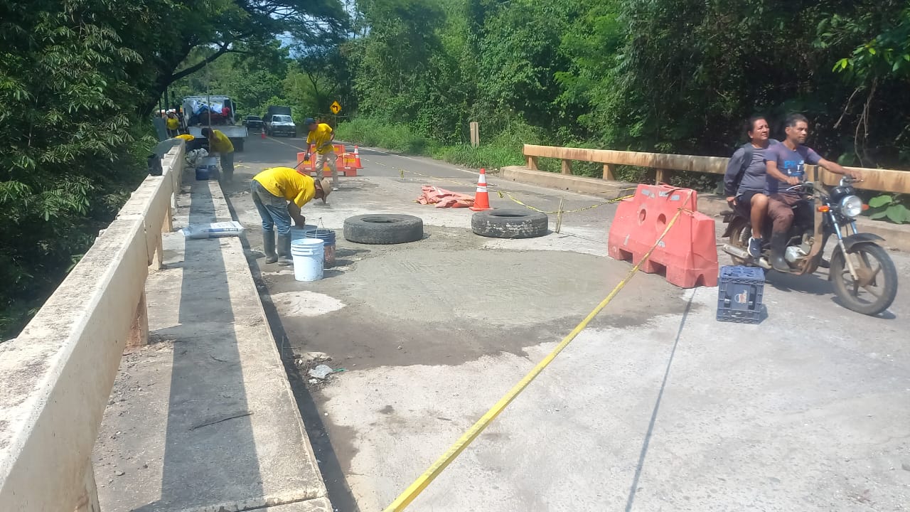 El personal técnico trabajó de forma continua en la colocación de planchas de acero y concreto en el área afectada, con el objetivo de restablecer la resistencia estructural del puente y garantizar la correcta circulación vehicular en esta importante vía que conecta el oriente del país con la costa sur.