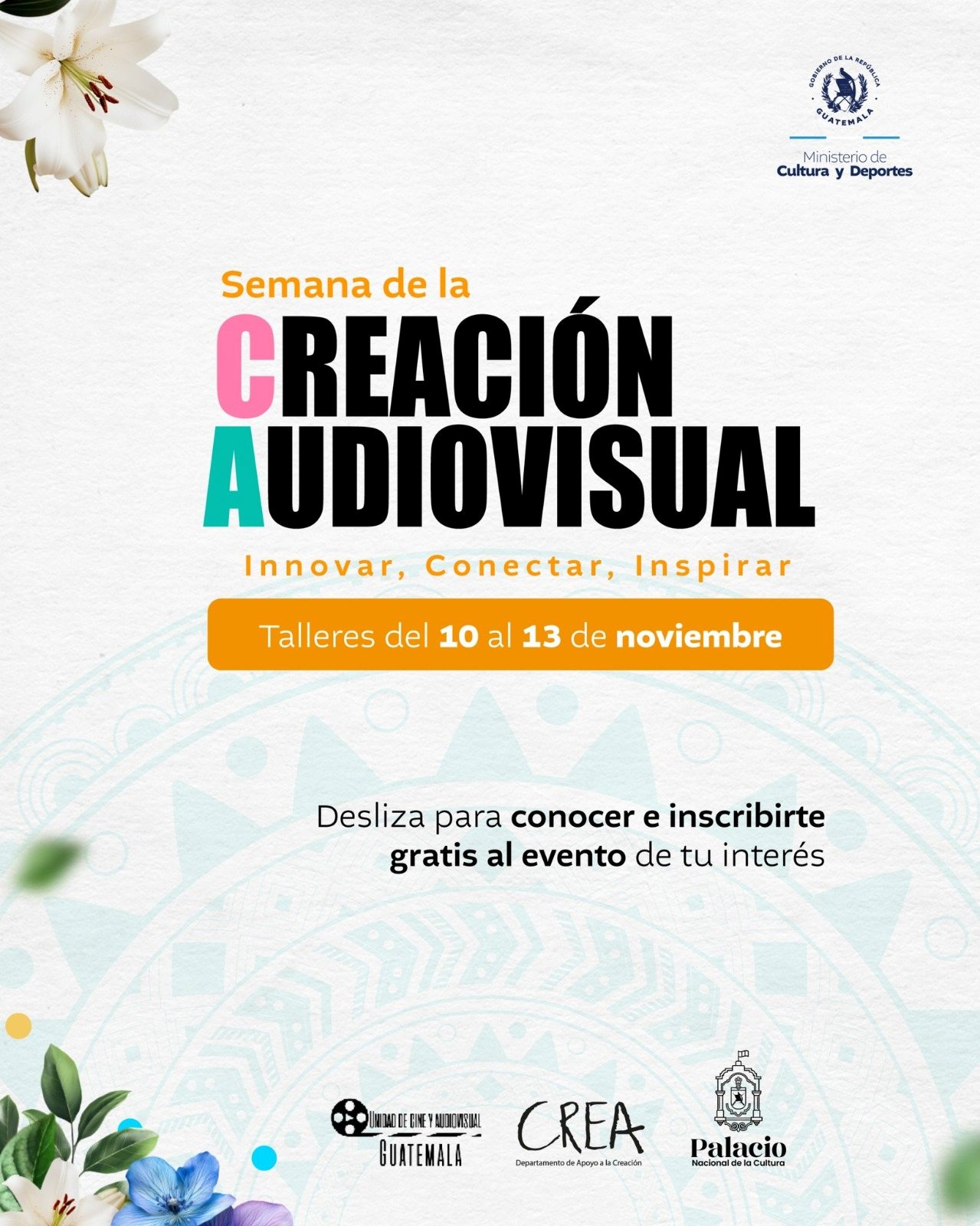 El mundo de hoy es digital, y la comunicación audiovisual es fundamental para impulsar historias y proyectos. Por ello, el Ministerio de Cultura y Deportes (MCD), a través del Departamento de Apoyo a la Creación (CREA), realizará la “Semana de la Creación Audiovisual” del 10 al 14 de noviembre de 2025.