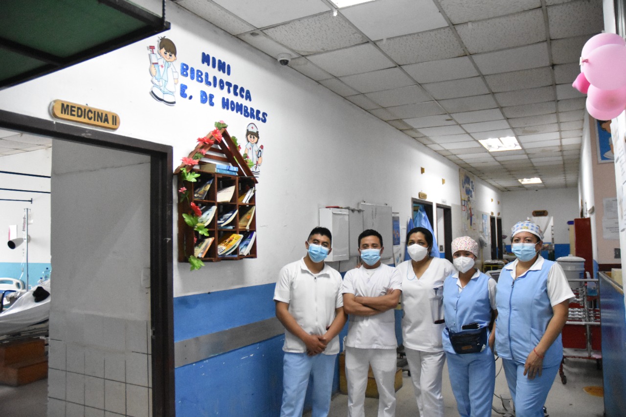 Por iniciativa de un grupo de trabajadores de enfermería se realizó una Mini Biblioteca en el área de Encamamiento de Hombres del Hospital Nacional de Chimaltenango. El objetivo es que los pacientes puedan leer durante su estancia hospitalaria, lo cual, les ayudará a reducir el estrés y entretenerse durante el día. "La idea surgió al ver la necesidad en el Encamamiento de Hombres, ya que no había ningún método para poder distraerse y entretenerse, fue en conjunto con los compañeros que se llegó a un acuerdo y empezamos a trabajar", indicó la Enfermera Profesional, Lisbeth Girón.