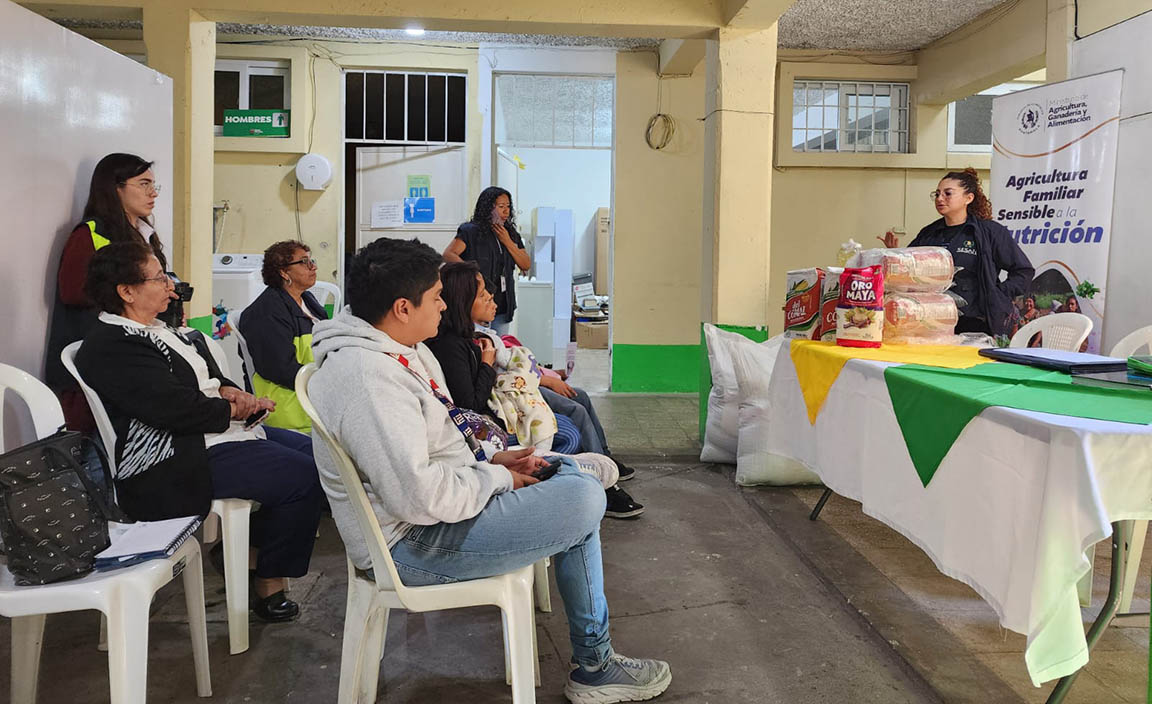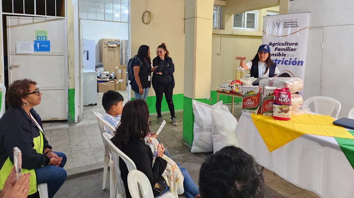 Con la entrega de la asistencia alimentaria en San Miguel Petapa, Guatemala, a familias con casos de niños con desnutrición aguda, el Ministerio de Agricultura, Ganadería y Alimentación (MAGA) brindó a las madres y padres una capacitación relativa a cómo aprovechar cada producto en casa.