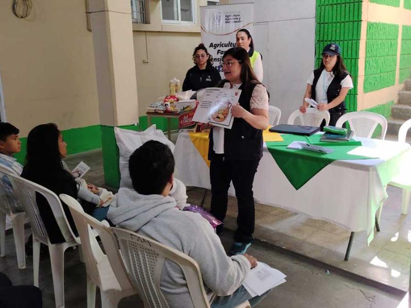 La nutricionista del componente de Agricultura Familiar Sensible a la Nutrición explicó, de forma sencilla, cómo preparar recetas fáciles y nutritivas utilizando los alimentos entregados. También mostró combinaciones que mejoran el valor nutricional de las comidas y ayudan a que los niños reciban más energía y nutrientes en cada plato.