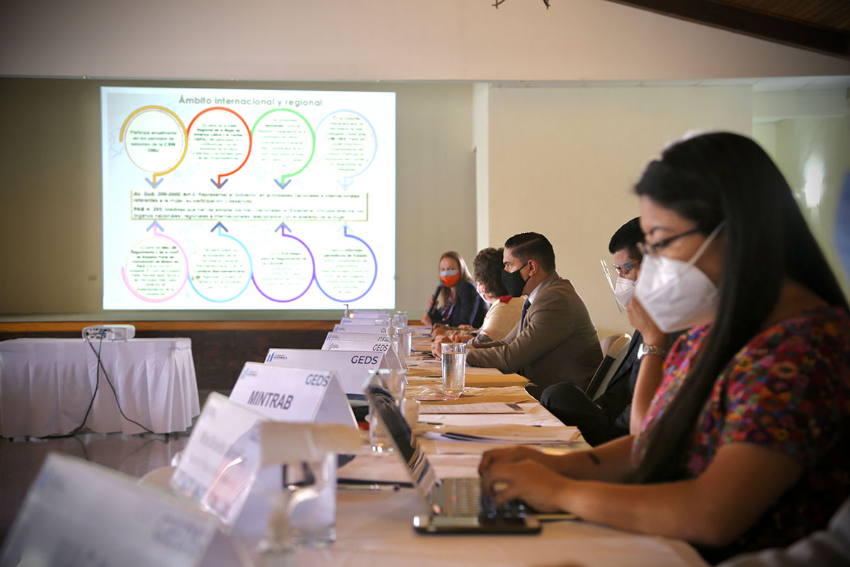 Durante la reunión se expuso el tema la Importancia de la Institucionalidad de la Mujer, a cargo de Adriana Quiñónez, representante de ONU Mujeres Guatemala, debido a que el rol social y el empoderamiento de la mujer son factores clave para el desarrollo de las acciones del gabinete, el cual cuenta con la Mesa Temática de Mujeres, enfocada en sus derechos humanos.