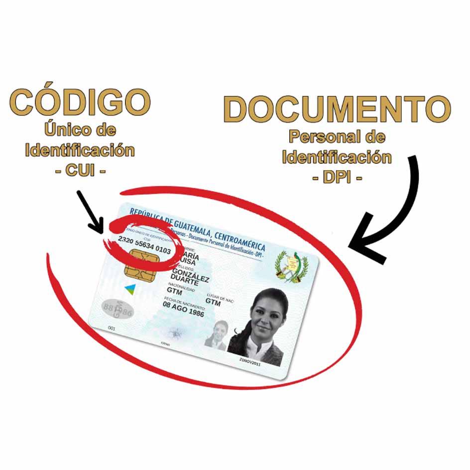 Algunas personas han confundido el CUI con la frase: “Número de DPI”, pero su nombre correcto es “Código Único de Identificación”, el cual consta de 13 dígitos que permanecen invariables desde el nacimiento hasta la muerte. El DPI es el documento físico, o sea la tarjeta que es elaborada con policarbonato.
