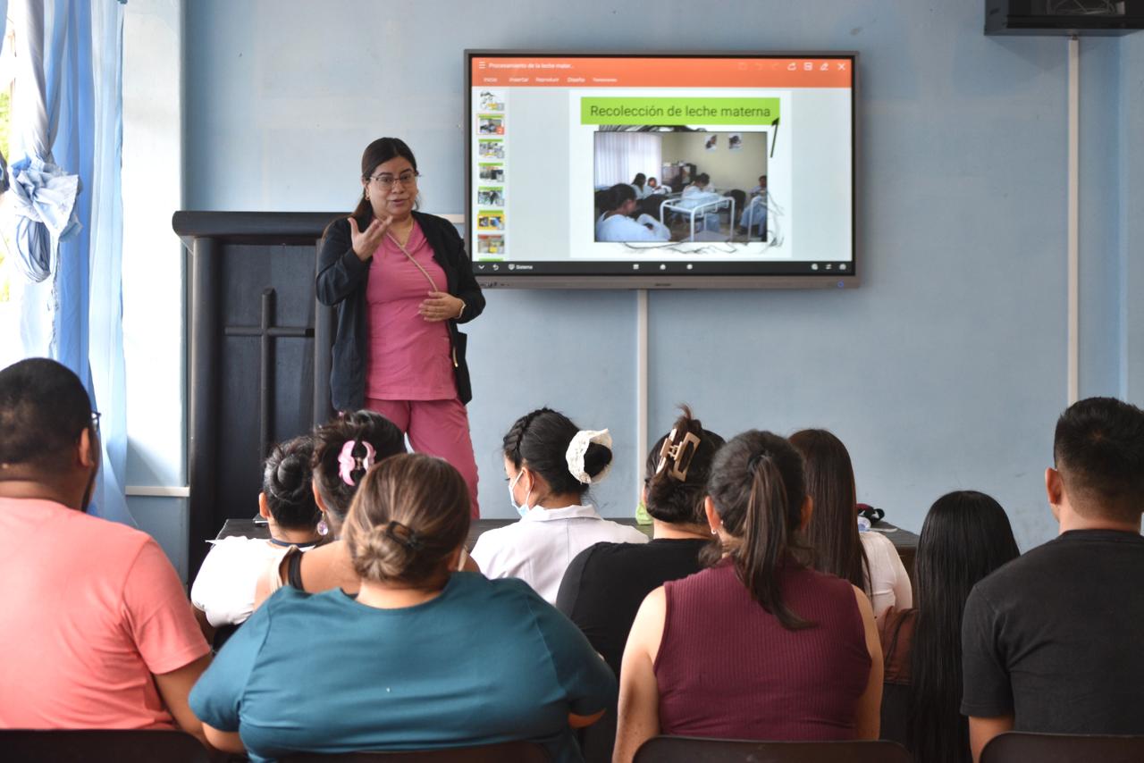 Dicha capacitación fue impartida por la María Lourdes Flores, coordinadora del Banco de Leche Humana, quien compartió buenas prácticas enfocadas en garantizar una nutrición segura, oportuna y de calidad para los recién nacidos que luchan por su vida desde sus primeros días.