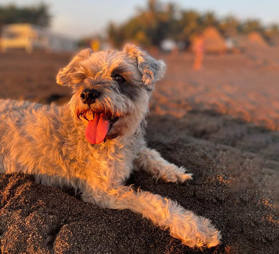 En playas o zonas calurosas se deben tomar precauciones adicionales. Procurar que permanezca en sombra, evitar que camine sobre arena caliente y ofrecerle siempre agua potable. No permita que beba agua salada, ya que puede provocarle malestares. También se puede aplicar un protector solar en nariz, orejas y zonas con poco pelo. Al final del día, se debe enjuagar su cuerpo con agua potable.