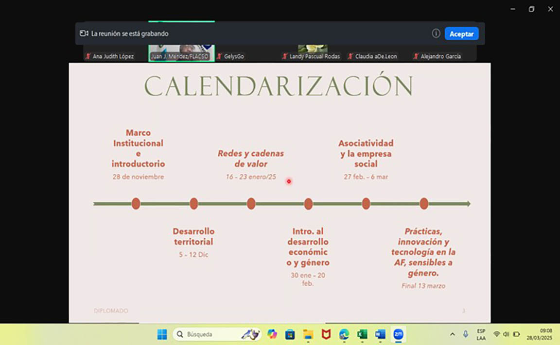 El diplomado estuvo coordinado por la Unidad de Género con el apoyo del Instituto Interamericano de Cooperación para la Agricultura (IICA) y la Facultad Latinoamericana de Ciencias Sociales (FLACSO).
