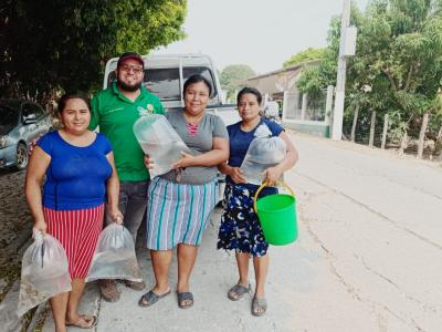 En San José, Petén, 82 familias podrán fortalecer la producción de alimentos para alcanzar la autosuficiencia alimentaria, al recibir, cada una, la dotación de 50 alevines de tilapia gris, producidos en el Centro de Producción El Remate, de San Andrés, Petén.
