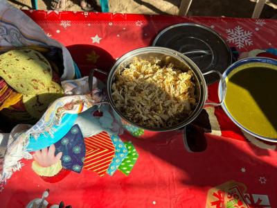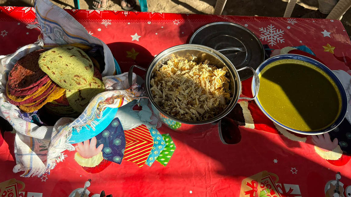Como parte de la receta, se elaboró un relleno de pollo y una salsa de miltomate con cilantro fresco cosechado directamente del huerto, fortaleciendo el vínculo entre la producción local y el consumo responsable de alimentos frescos.