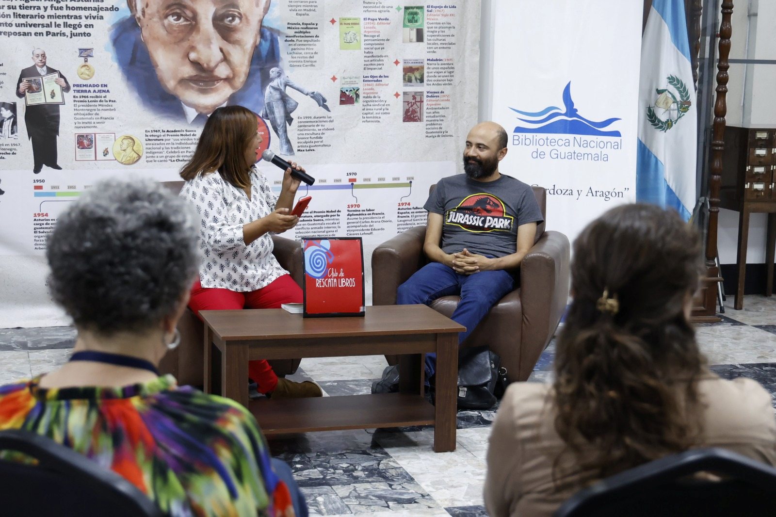El vestíbulo de la Biblioteca Nacional “Luis Cardoza y Aragón” fue el escenario donde, el 25 de septiembre a las 17:00 horas, el escritor guatemalteco Martín Díaz Valdés sostuvo un conversatorio con Sindy Arreaga, coordinadora del club literario “Rescatalibros”, un espacio que promueve a los autores nacionales sobre diversos aspectos de su relación con la literatura y la cultura en general.