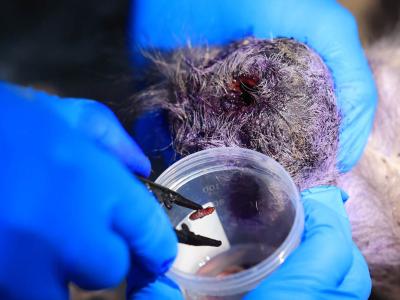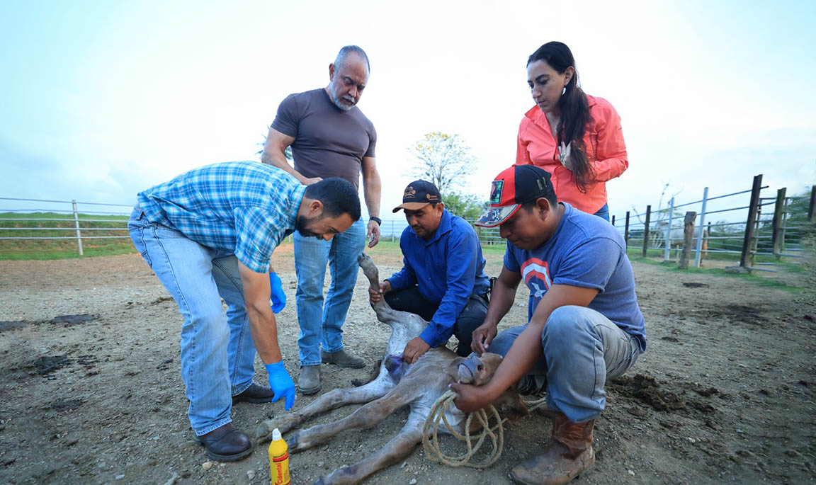 En una gira de campo realizada por los departamentos de Petén e Izabal, se realizó una curación a un ternero de cuatro días de nacido, el que presentaba una miasis en el ombligo. Esta provocó en el animal una onfaloflebitis, inflamación del cordón umbilical, por la presencia del Gusano Barrenador del Ganado (GBG). Este caso fue atendido por Eduardo Martínez, jefe de Vigilancia Epidemiológica y Análisis de Riesgo de la Dirección de Sanidad Animal, del Viceministerio de Sanidad Agropecuaria y Regulaciones (VISAR).