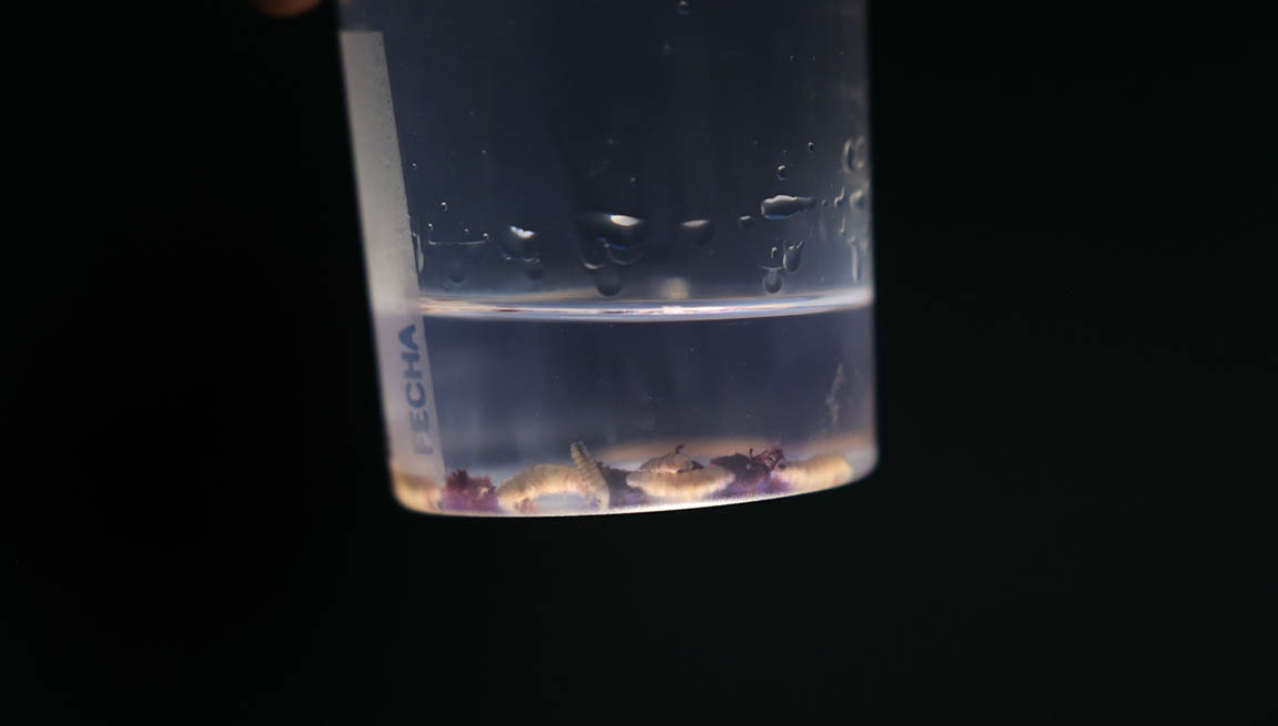“Se encontraron larvas de Gusano Barrenador del Ganado, de tamaños L3, L2 y L1, lo que significa que en el área hay varias moscas silvestres ovipositando en terneros, específicamente en obligos, un área predilecta para la mosca, en donde encuentra una herida fresca” dijo Martínez.