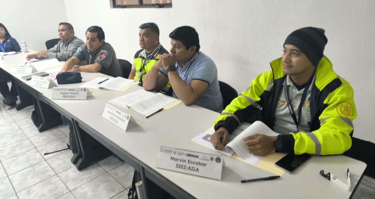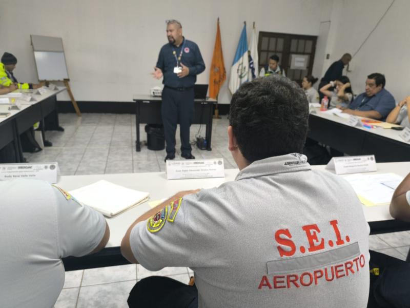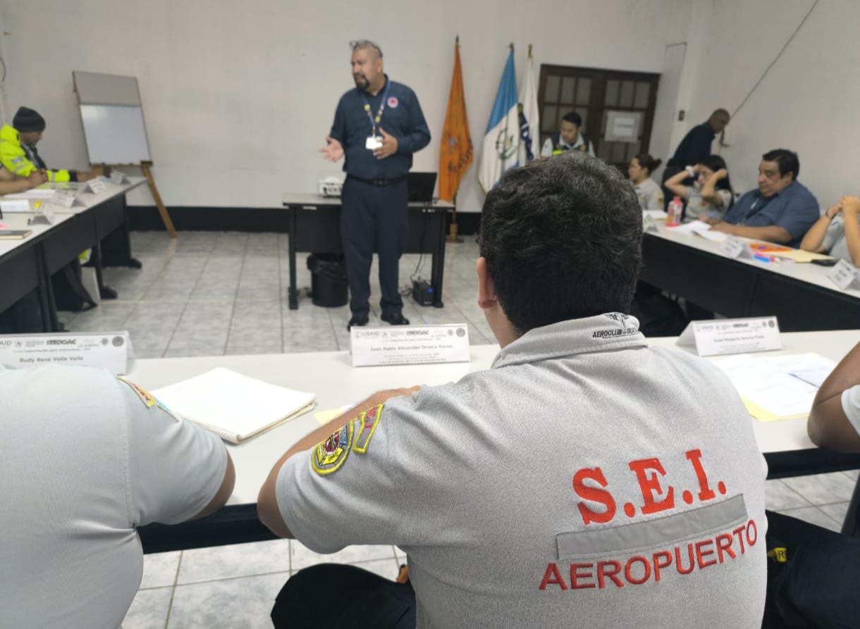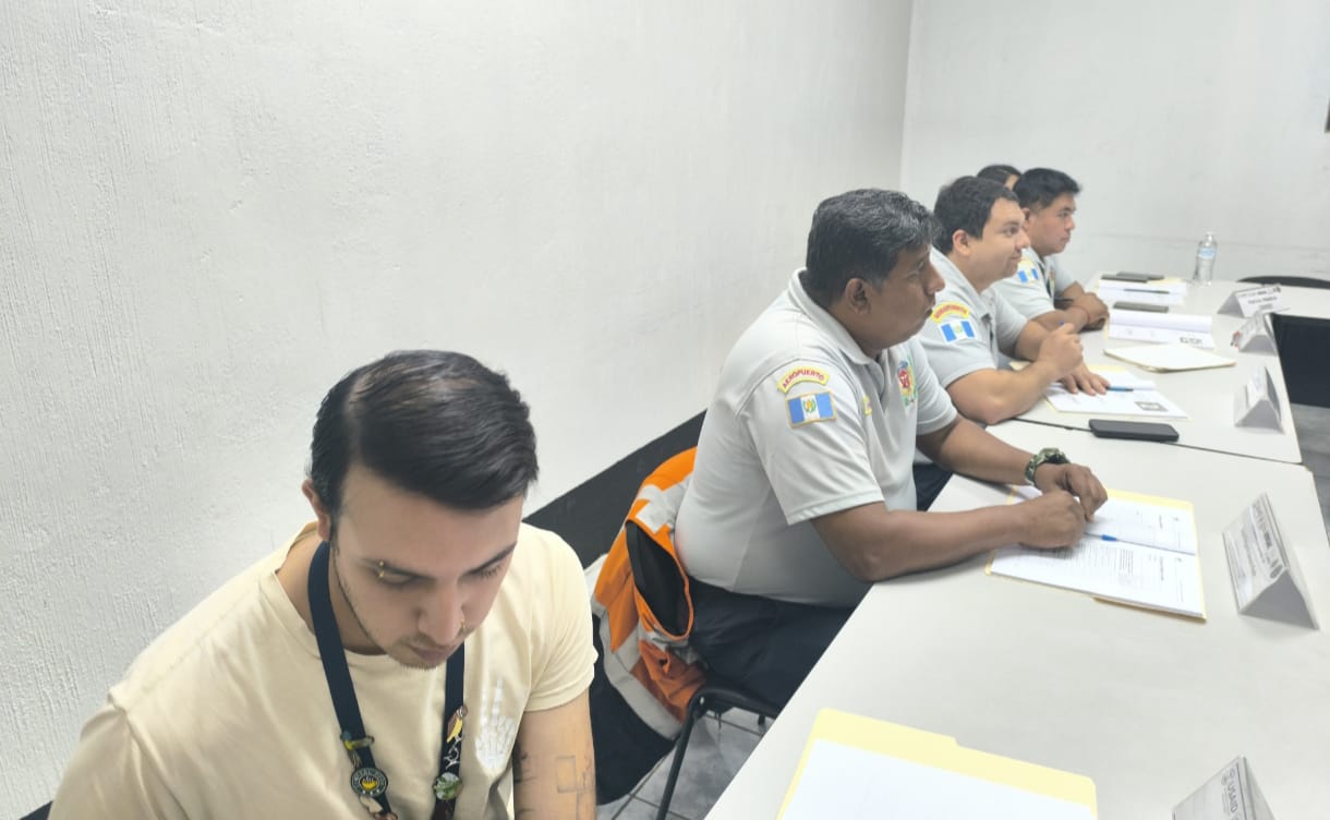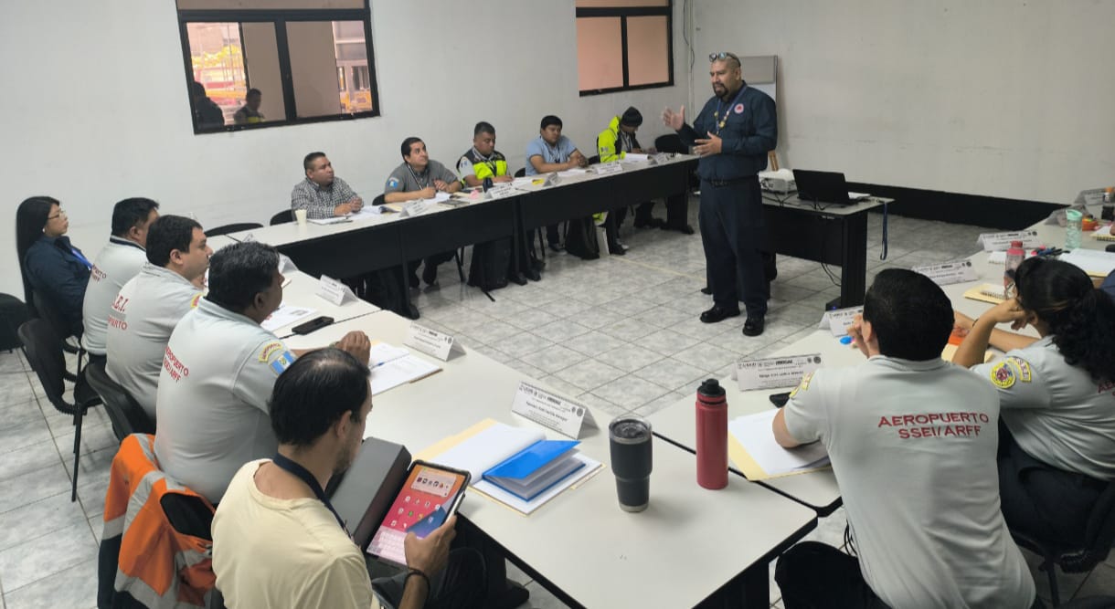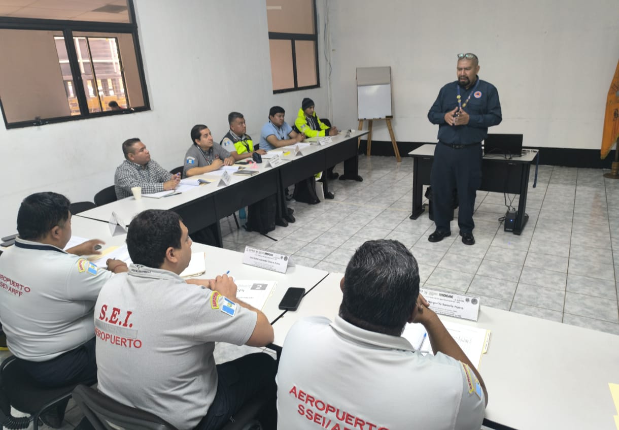 El grupo de participantes está conformado por representantes de diversas entidades, entre ellas CONRED, Bomberos Municipales y personal del SEI del Aeropuerto Internacional La Aurora, lo que favorece el intercambio de experiencias y fortalece la coordinación interinstitucional. Esta diversidad de perfiles enriquece el proceso y contribuye a una visión integral de la respuesta ante emergencias.