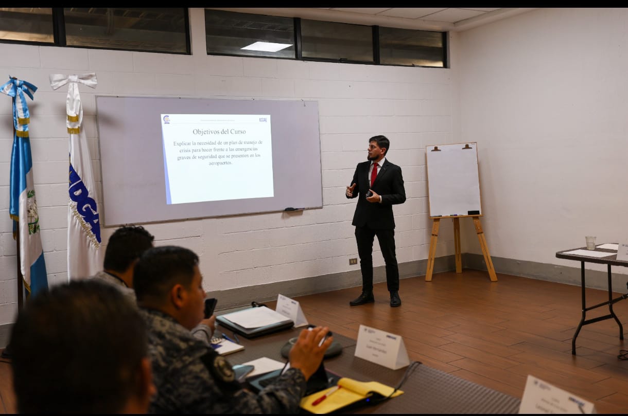 La Dirección General de Aeronáutica Civil (DGAC), a través de la Administración Nacional de Seguridad de la Aviación Civil (AVSEC) del Aeropuerto Internacional La Aurora, llevó a cabo el Curso de Manejo de Crisis, con el objetivo de fortalecer las capacidades de respuesta y coordinación interinstitucional ante posibles situaciones de emergencia en el entorno aeroportuario.