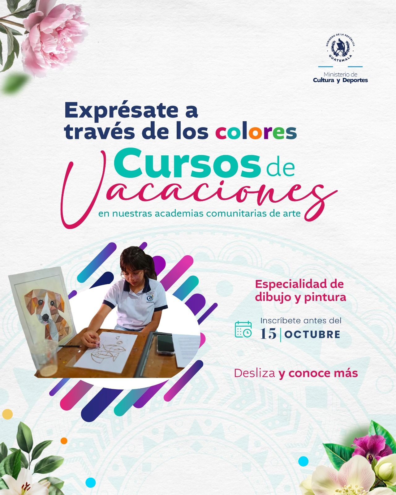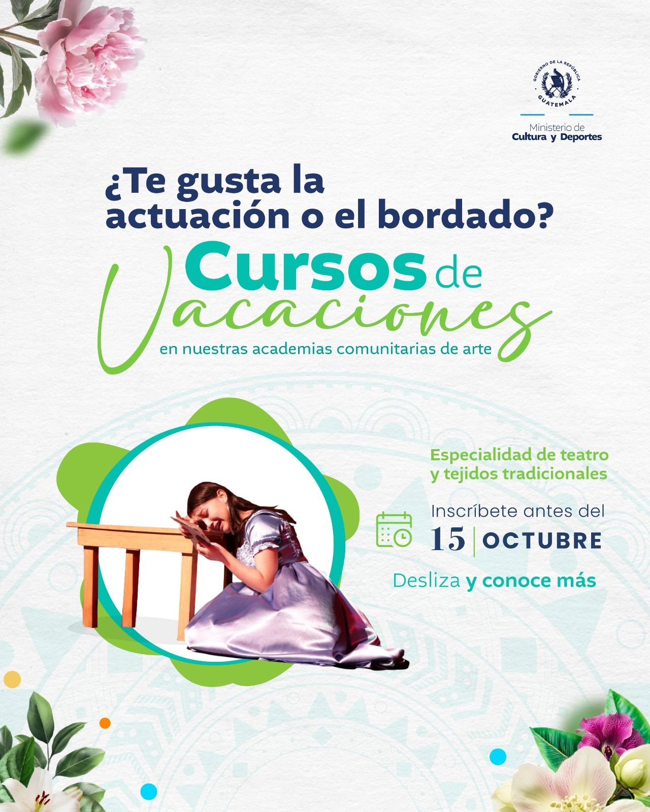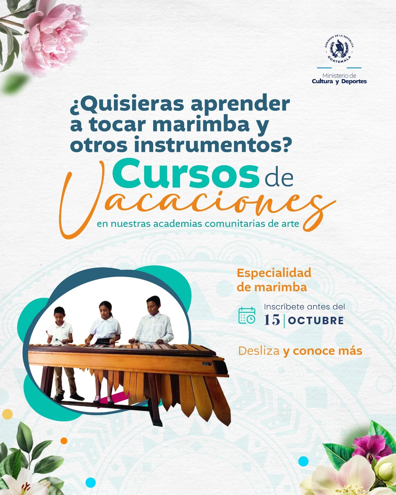 El Ministerio de Cultura y Deportes pone a disposición los cursos de vacaciones 2025 para aprender a tocar marimba y otros instrumentos; actuación o bordado y a expresarte a través de los colores.