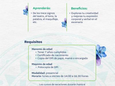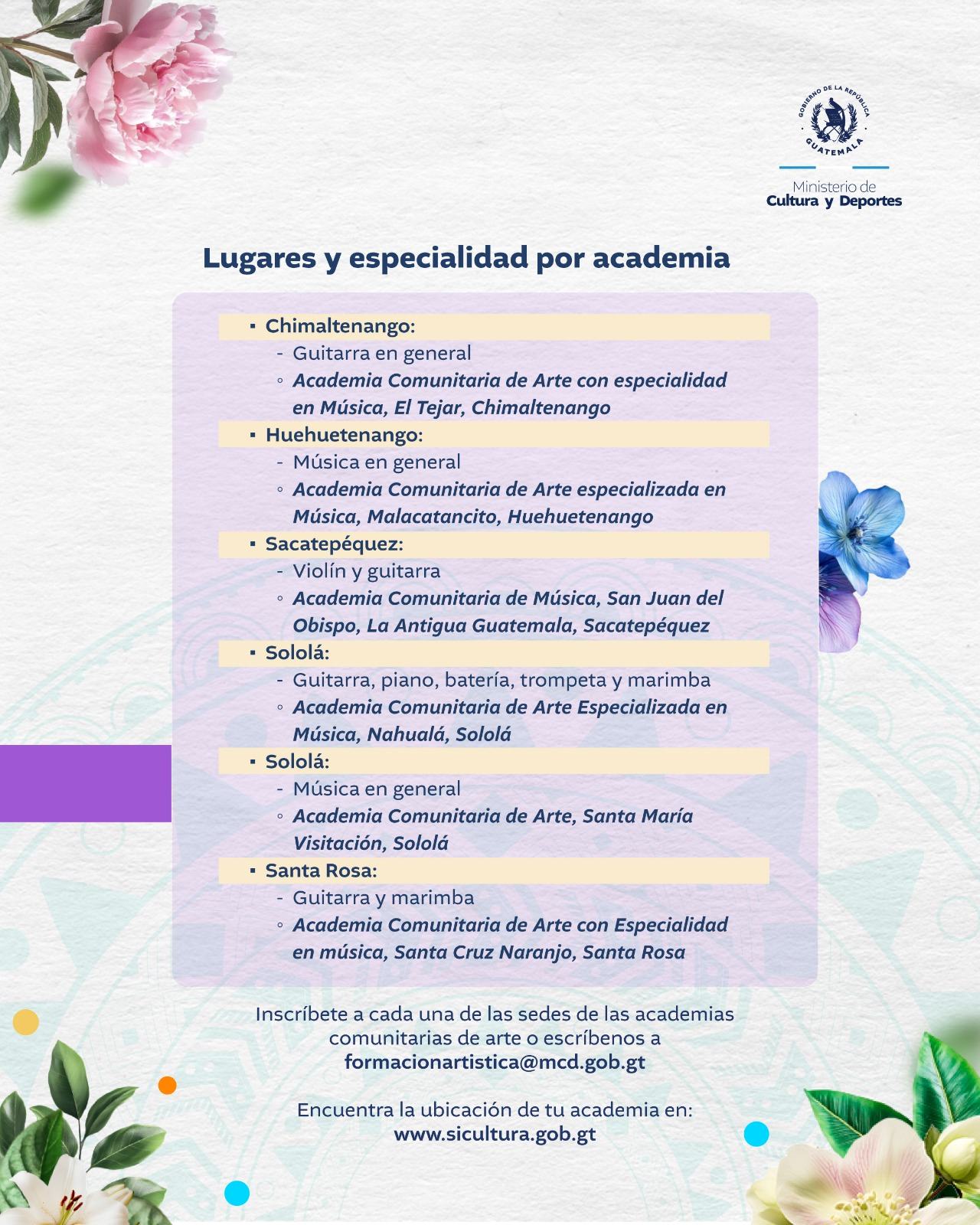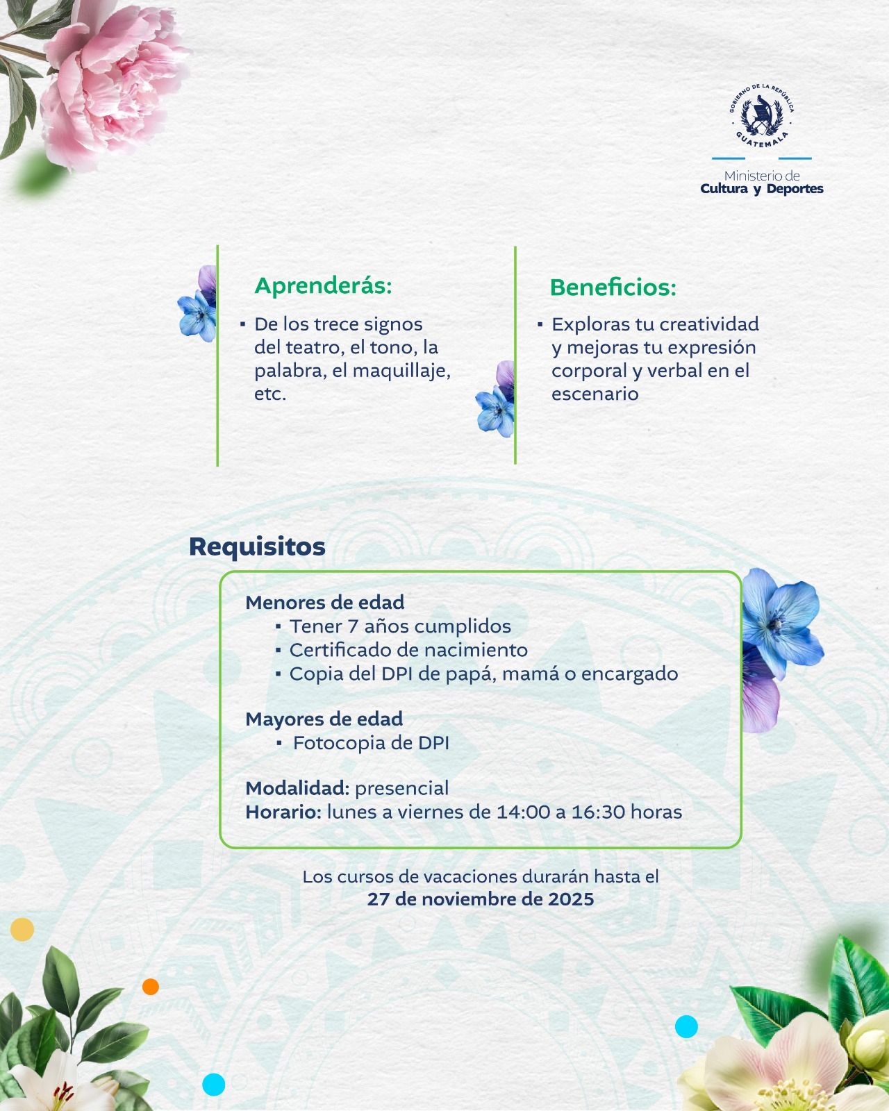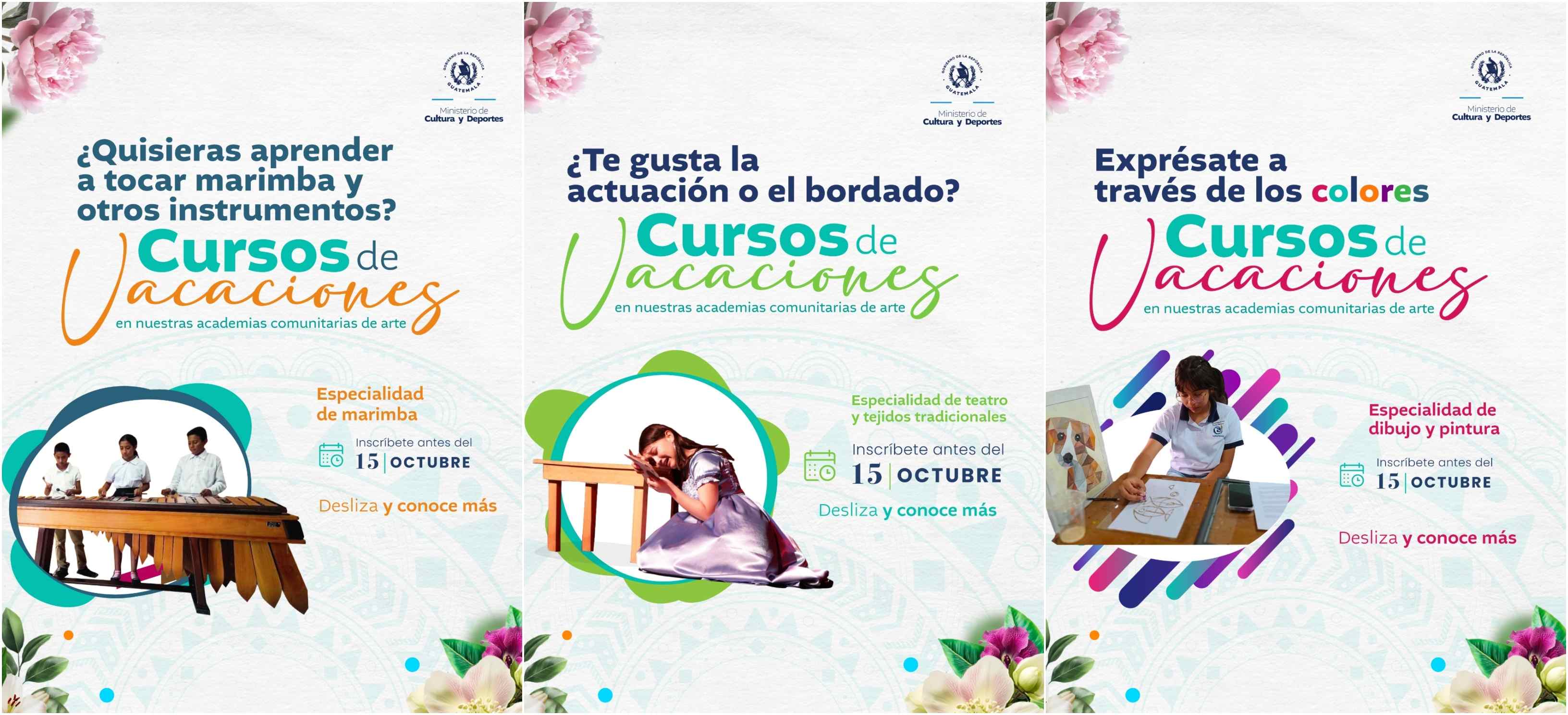El Ministerio de Cultura y Deportes pone a disposición los cursos de vacaciones 2025 para aprender a tocar marimba y otros instrumentos; actuación o bordado y a expresarte a través de los colores.