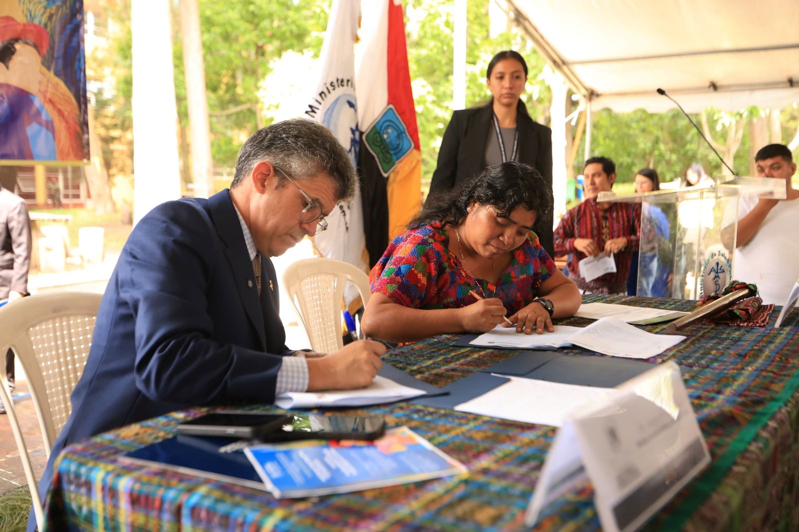 Seguidamente en un acto protocolario se procedió a la firma del convenio entre el ministerio de Salud Pública y Asistencia Social -MSPAS- y la universidad Maya Kaqchikel del cual fue testigo de honor la vicepresidente de la República Karin Herrera, así también, se dio el Lanzamiento de la Asamblea Nacional de Salud de los Pueblos Indígenas y su Consejo.