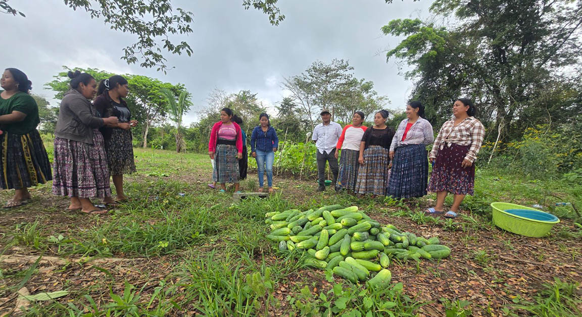 Sin importar que el sol estuviera en su cenit, en la aldea El Prado, de Ixcán, Quiché, 23 mujeres mayas de etnia Q’eqchi’ trabajaron en sus huertos hasta finalizar la recolección del fruto de su trabajo y aprendizaje: una cosecha de pepinos.