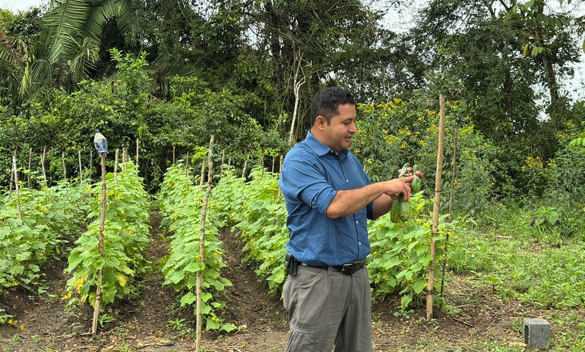 Al finalizar la capacitación, con canastas en mano, las participantes iniciaron la cosecha de pepino, uno de los cultivos que sembraron a partir de las semillas recibidas en enero del presente año, bajo la intervención de insumos para huertos familiares.