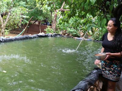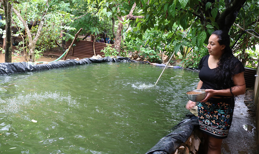 Hoy, con la vista hacia sus estanques, Véliz Cucul recuerda cómo el pequeño lote de alevines de tilapia gris que nadaban en la pila donde lavaba ropa, creció y hoy es el negocio que ha beneficiado a su familia y su comunidad.