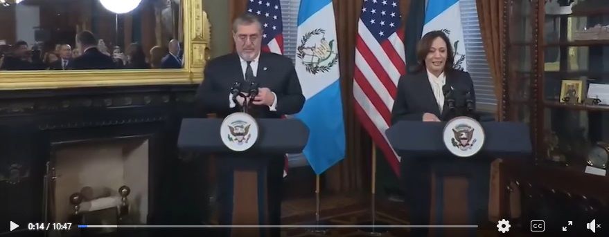 Declaración conjunta del Presidente Bernardo Arévalo y la Vicepresidenta estadounidense Kamala Harris, la cual se llevó a cabo en Washington DC, Estados Unidos.