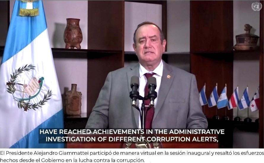 El Presidente Giammattei participó en calidad de jefe de delegación, y como adjuntos fueron acreditados el Ministro de Relaciones Exteriores, Pedro Brolo, y el Director Ejecutivo de la CPCC, Oscar Dávila. En cumplimiento de lo establecido en el Acuerdo Gubernativo 28-2020, artículo 5, literal i, el Director Ejecutivo de la CPCC dio seguimiento a la Sesión Especial de la Asamblea de Naciones Unidas Contra la Corrupción, para conocer experiencias de otros Estados que le permitirán proponer mecanismos que contribuyan a la prevención y combate a la corrupción en el país.