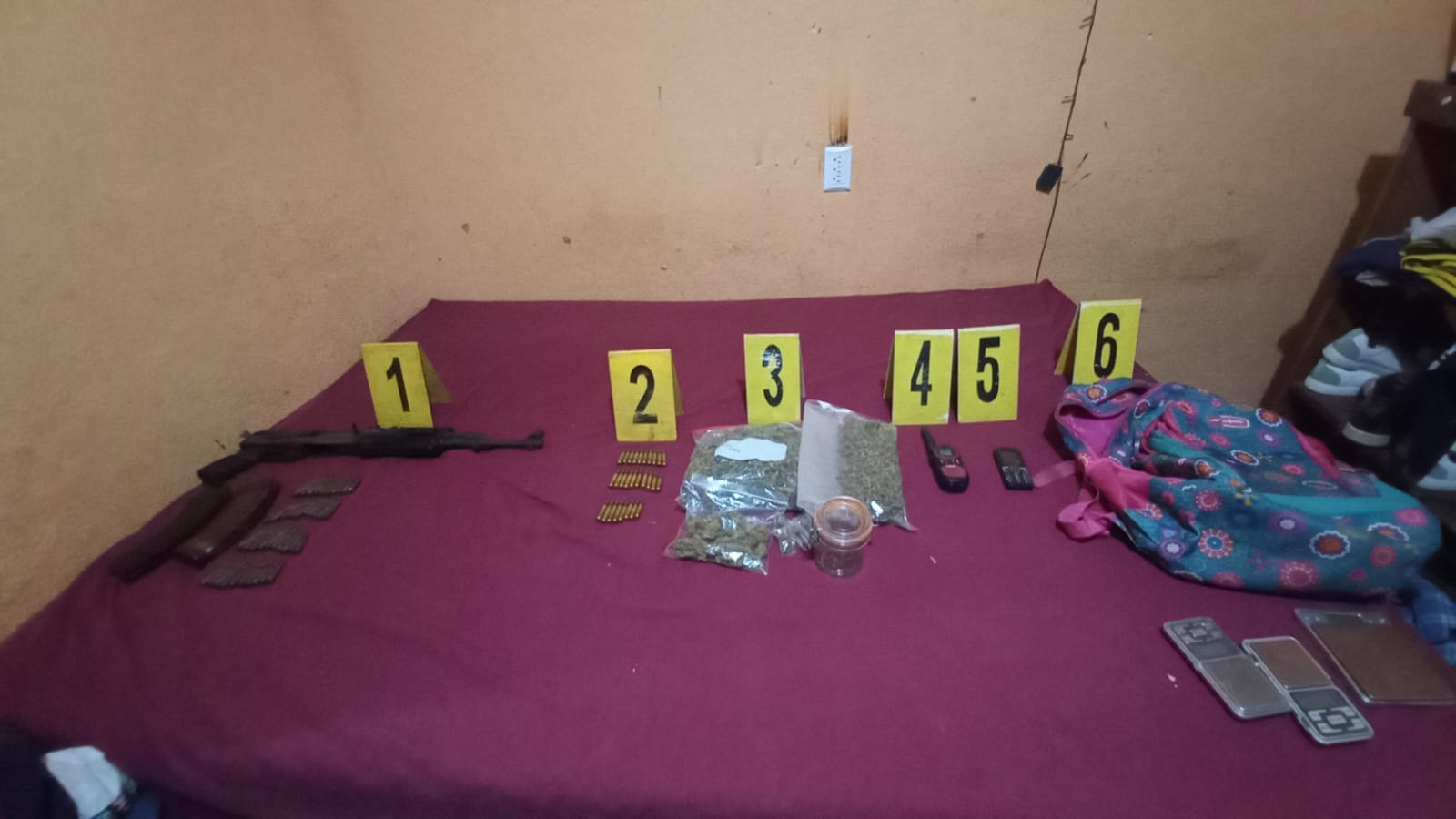 En la residencia allanada se decomisó un fusil AK-47, dos cargadores para fusil, 68 municiones de grueso calibre, dos bolsas con marihuana, un teléfono satelital y un dispositivo móvil. Los objetos ilícitos serán analizados para fortalecer los procesos de investigación con relación a este caso.