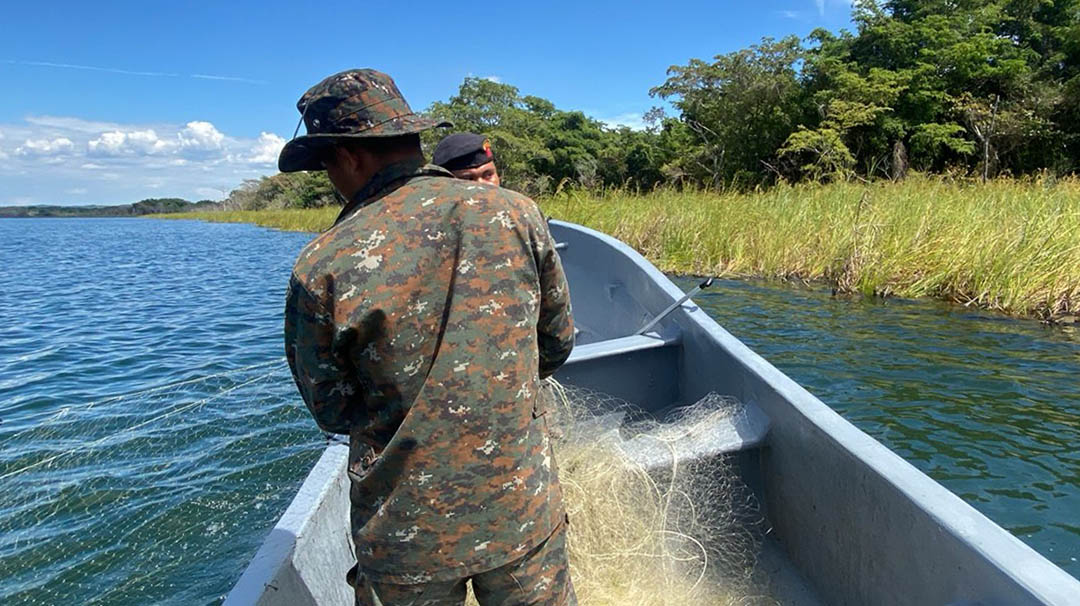 El lunes 20 de abril se realizó el decomiso de un arte de pesca ilegal en el Lago Petén Itzá, luego de que se recibiera una denuncia por la presencia de un trasmallo no autorizado.