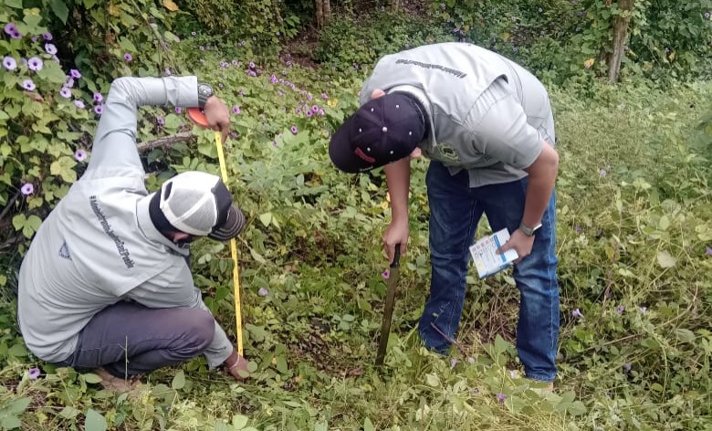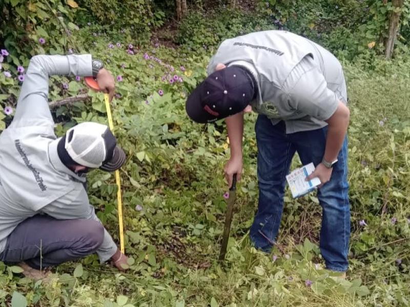 La visita fue en coordinación con la Unidad de Gestión Ambiental Municipal de Sansare, y evaluaron el estado fitosanitario, incrementos epidométricos de la reforestación establecida este 2022.
