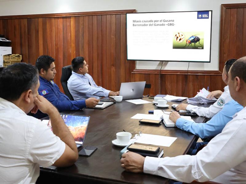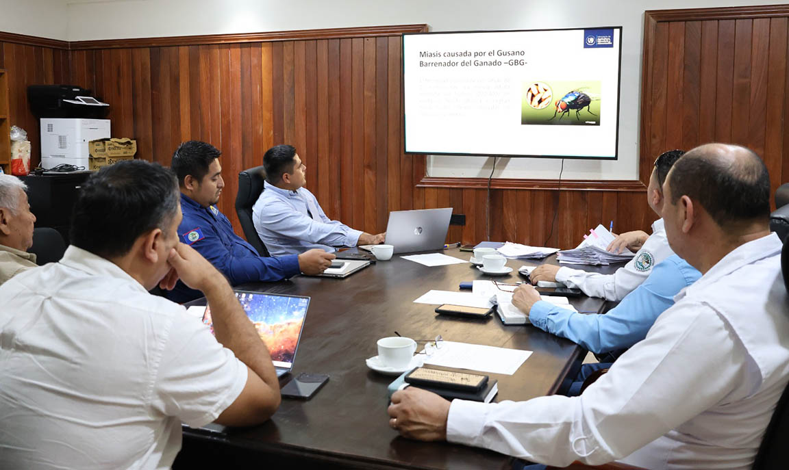 Una delegación del Viceministerio de Agricultura de Belice, encabezada por el señor Servulo Baeza, visitó el Petén para entrevistarse con las autoridades del Ministerio de Agricultura, Ganadería y Alimentación, encabezadas por el viceministro Encargado de Asuntos de Petén (VIPETÉN), Elmer Salazar, con el objetivo de coordinar información y acciones para la prevención, control y erradicación del gusano barrenador en el ganado (GBG).