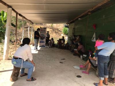También en Petén, la delegación capacitó a vecinos del barrio Nuevo Mangal, San Benito. Los 21 habitantes conocieron sobre la correcta disposición de la basura, las obligaciones de las municipalidades y las responsabilidades que tienen de separar la basura desde el hogar.
