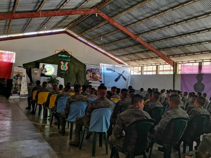 En Jutiapa, los educadores ambientales capacitaron, a personal de la III Brigada de Infantería del Ejército, con el objetivo de promover la conciencia ambiental a través del análisis personal y toma de conciencia, lo que fortalece el liderazgo en la reducción de la vulnerabilidad y la adaptación ante los efectos del cambio climático. En la actividad participaron 90 miembros del Ejército.