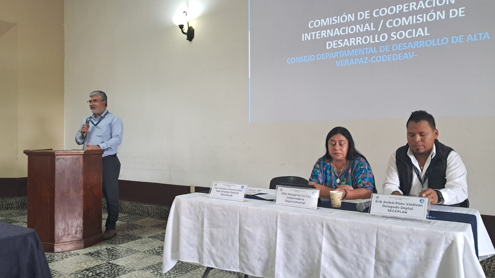 La actividad fue presidida por Dilia Margarita Co Coy, Gobernadora Departamental, quien destacó la importancia de institucionalizar los procesos de cooperación para el desarrollo, promoviendo la coordinación entre los socios implementadores/cooperantes y la institucionalidad pública. Asimismo, subrayó la necesidad de visibilizar las intervenciones de cooperación en el territorio y elaborar, de manera conjunta, ejes de trabajo que respondan de forma integral a las prioridades del departamento. Invitó a los presentes a sumarse para conformar alianzas estratégicas que impulsen el desarrollo de Alta Verapaz.