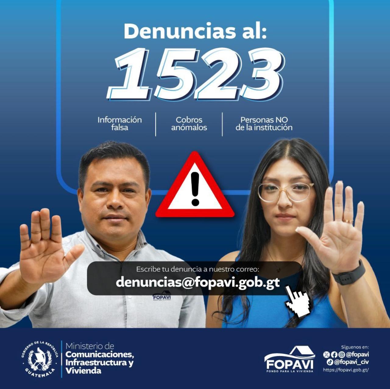 Recuerda: FOPAVI no cobra por formularios, trámites ni inscripciones. Si alguien te solicita dinero a cambio de un subsidio, ¡denuncia inmediatamente al 1523!