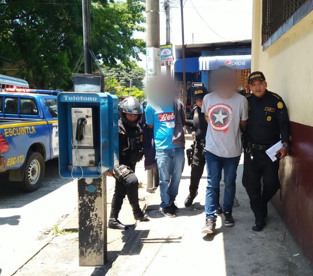 La acción inmediata de agentes de la comisaría 31 de la Policía Nacional Civil (PNC), permite la aprehensión de 2 presuntos asaltantes en la avenida central, zona 4 de Palín, Escuintla.