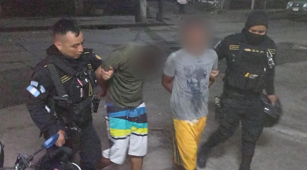 Los aprehendidos son Edgar Estuardo Marín y Cristian Estuardo Arévalo Ardón, ambos de 29 años, quienes al notar la presencia policial intentaron darse a la fuga a bordo de una motocicleta, siendo interceptados de forma inmediata por los efectivos.