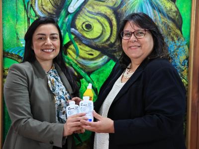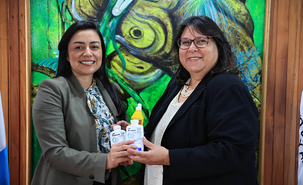 Raúl Rodas, director Ejecutivo del OIRSA, y Rosario Gómez, representante del OIRSA en Guatemala, hicieron la entrega simbólica del producto, el cual fue recibido por la ministra del MAGA, María Fernanda Dávila, y la viceministra del VISAR, Mayra Motta, quienes agradecieron dicho aporte que servirá para hacer frente a la emergencia por GBG.