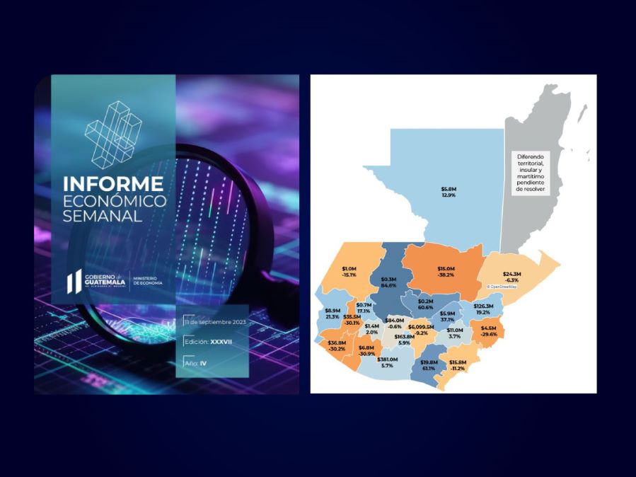 De acuerdo con el Mapa Departamental de Exportaciones, elaborado por la Dirección de Análisis Económico (DAE), del Ministerio de Economía (MINECO), a julio pasado el departamento de Guatemala lideraba la intención de exportación del país, con US$6,099 millones, cifra 9.2% menor a lo registrado en el mismo mes de 2022.