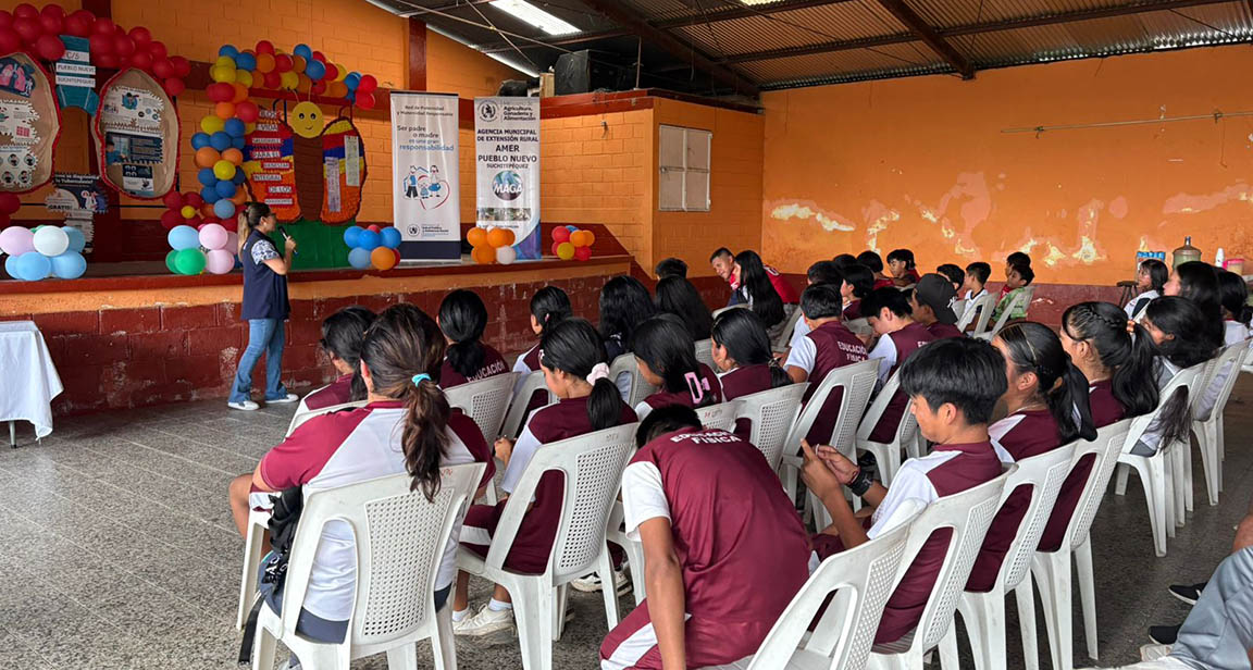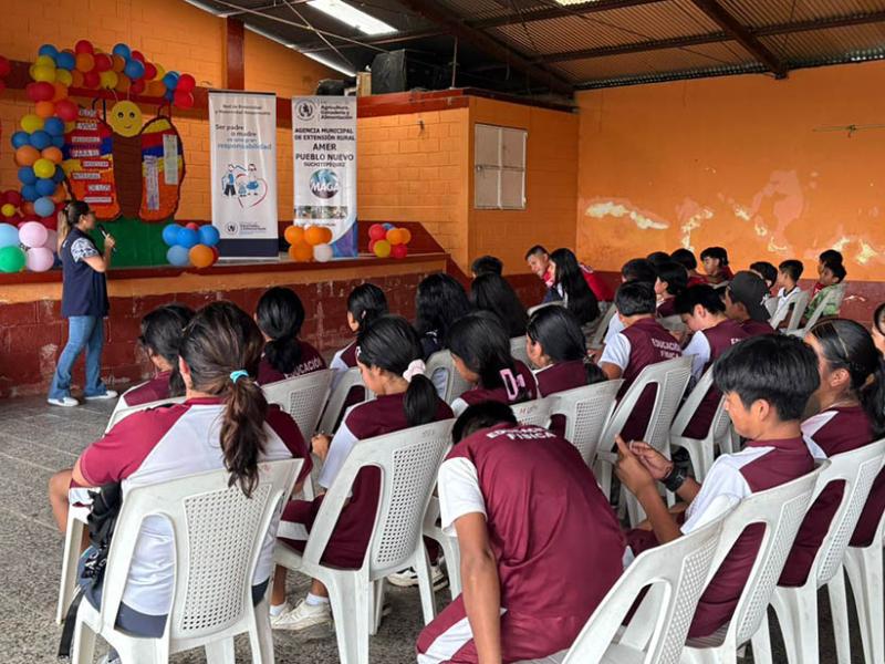 El Ministerio de Agricultura, Ganadería y Alimentación (MAGA), por medio de una nutricionista del componente de Agricultura Familiar Sensible a la Nutrición y Fomento de Huertos, tuvo a su cargo la charla “Promoviendo un estilo de vida saludable en adolescentes”