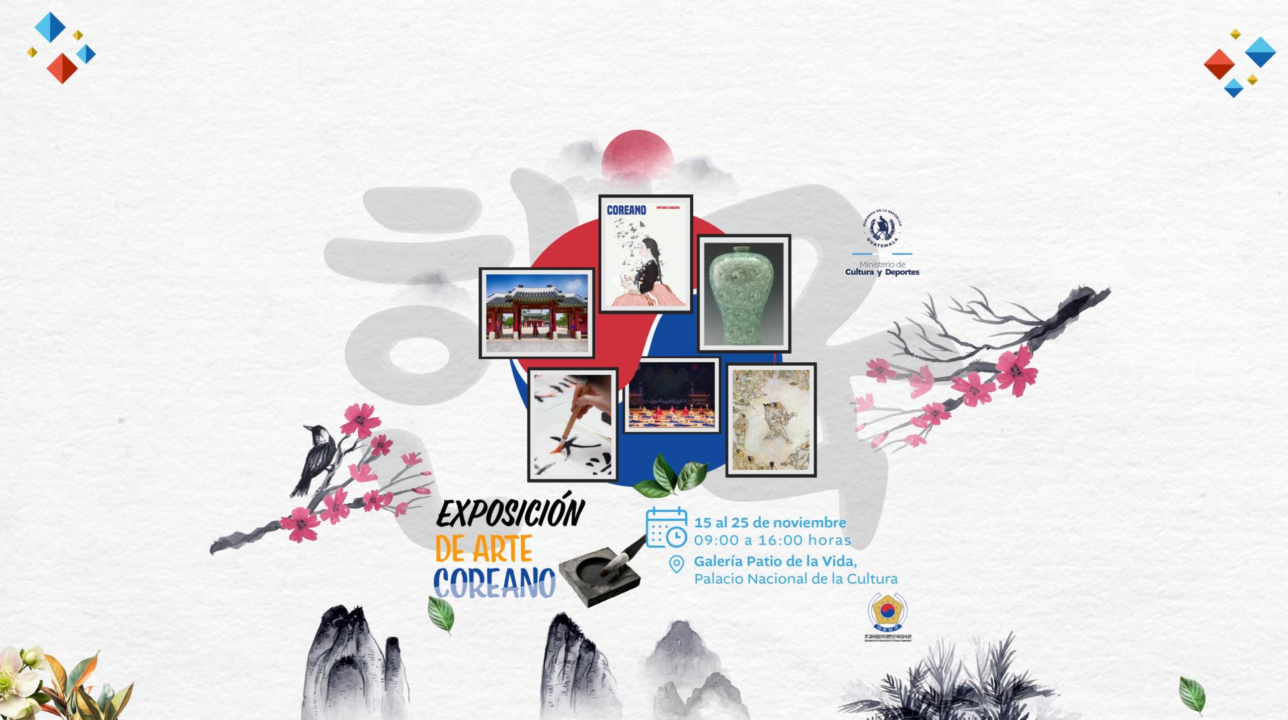 La Galería del Patio de la Vida en el Palacio Nacional de la Cultura se prepara para la inauguración de la “Exposición de Arte Coreano” este sábado 15 de noviembre. Esta muestra busca acercar a los asistentes a la riqueza cultural del país asiático a través de su historia, arte y tradiciones.