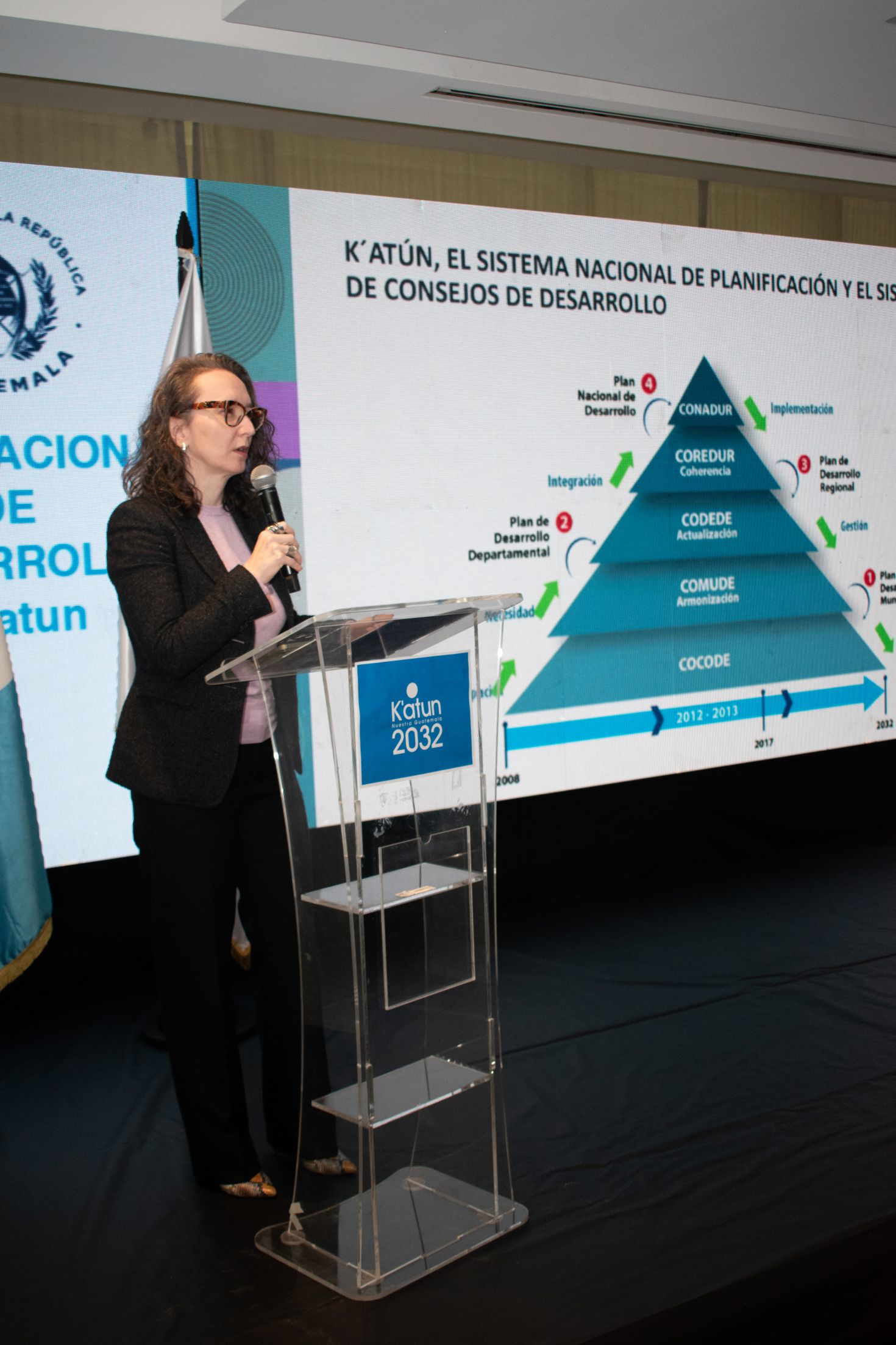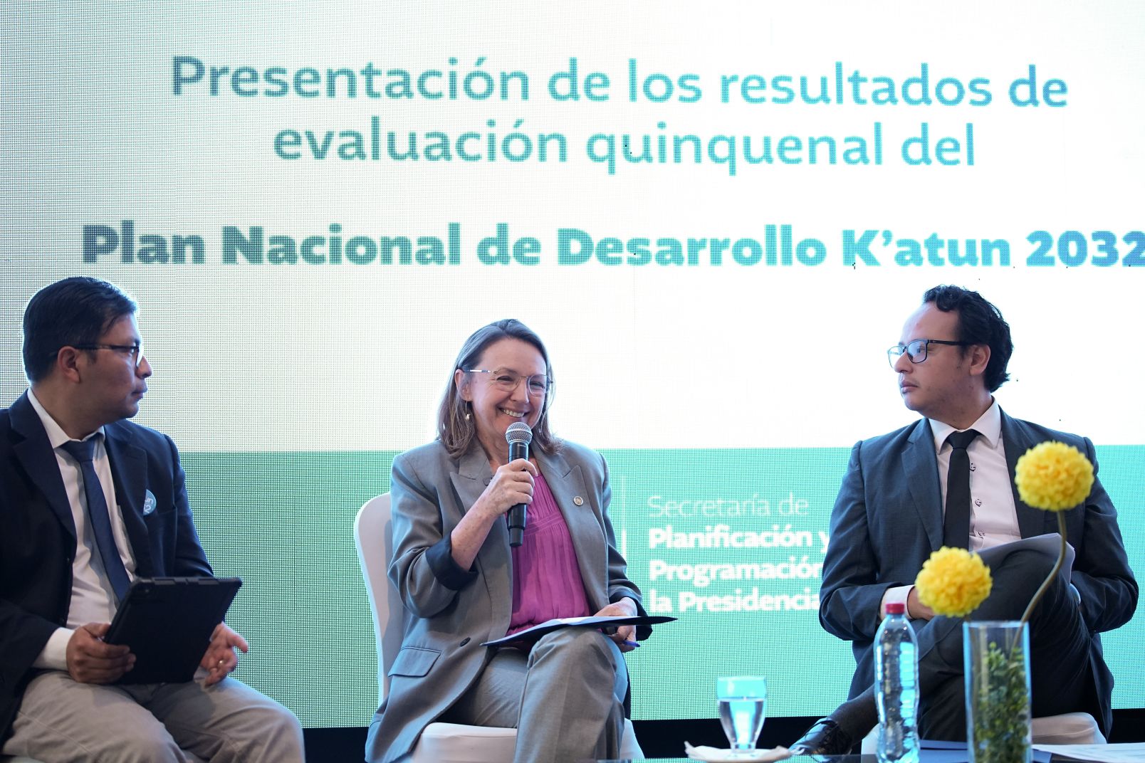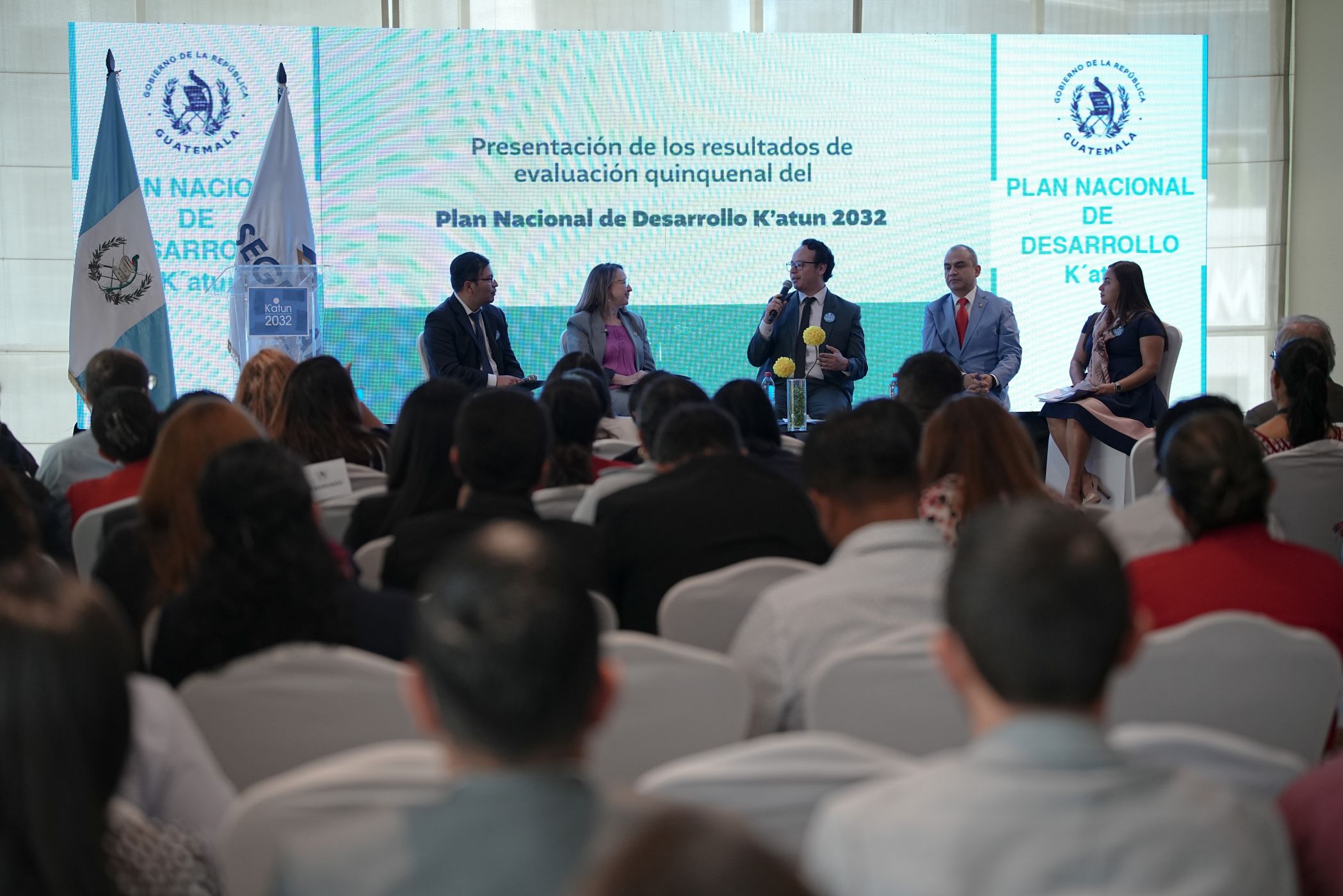 Como parte del evento, se realizó el conversatorio “Construyendo la Guatemala 2032: aprendizajes y oportunidades para acelerar el desarrollo”. Participaron la ministra de Ambiente y Recursos Naturales, Patricia Orantes; el viceministro de Tecnología de la Información y Comunicaciones del Ministerio de Gobernación, William Enrique Cameros; la Directora de Planeamiento del Ministerio de Agricultura (MAGA), Rina Verónica Méndez Solís, y el Director de Planificación y Desarrollo, del Ministerio de Salud Pública, Carlos Enrique Santacruz,