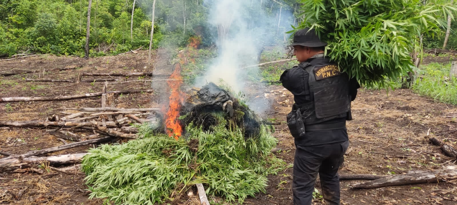 El operativo de localización y destrucción de cultivos ilícitos se desarrolló en áreas montañosas del caserío Los Laureles, Melchor de Mencos, Petén, informó la institución encargada del orden público.