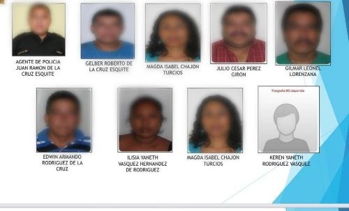 Los detenidos son: Gelber Roberto De La Cruz Esquite, Magda Isabel Chajón Turcios, Julio César Pérez Girón, Gilmar Leonel Lorenzana, Edwin Armando Rodríguez De La Cruz, Ilisia Yaneth Vásquez Hernández, Magda Isabel Chajón Turcios, Keren Yaneth Rodríguez Vásquez.