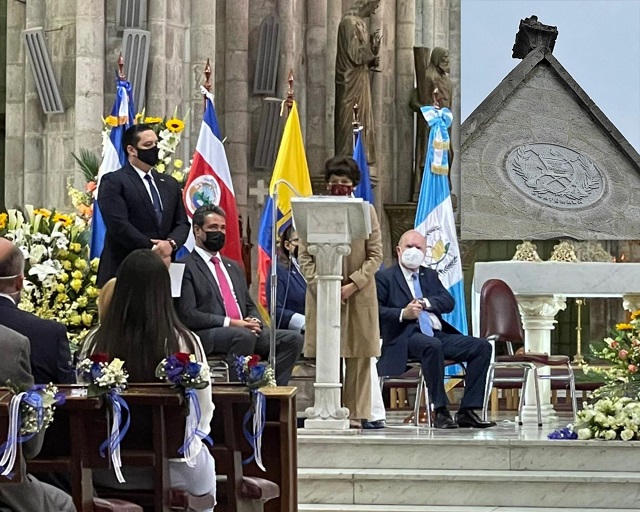 La actividad se desarrolló el 1 de septiembre en presencia de funcionarios del gobierno ecuatoriano, del Cuerpo Diplomático y de la comunidad guatemalteca, quienes observaron la bendición de los escudos por parte del nuncio apostólico, monseñor Andrés Carrascosa, quien dedicó palabras emotivas a los cuatro países centroamericanos, destacando la importancia del hermanamiento con Ecuador.