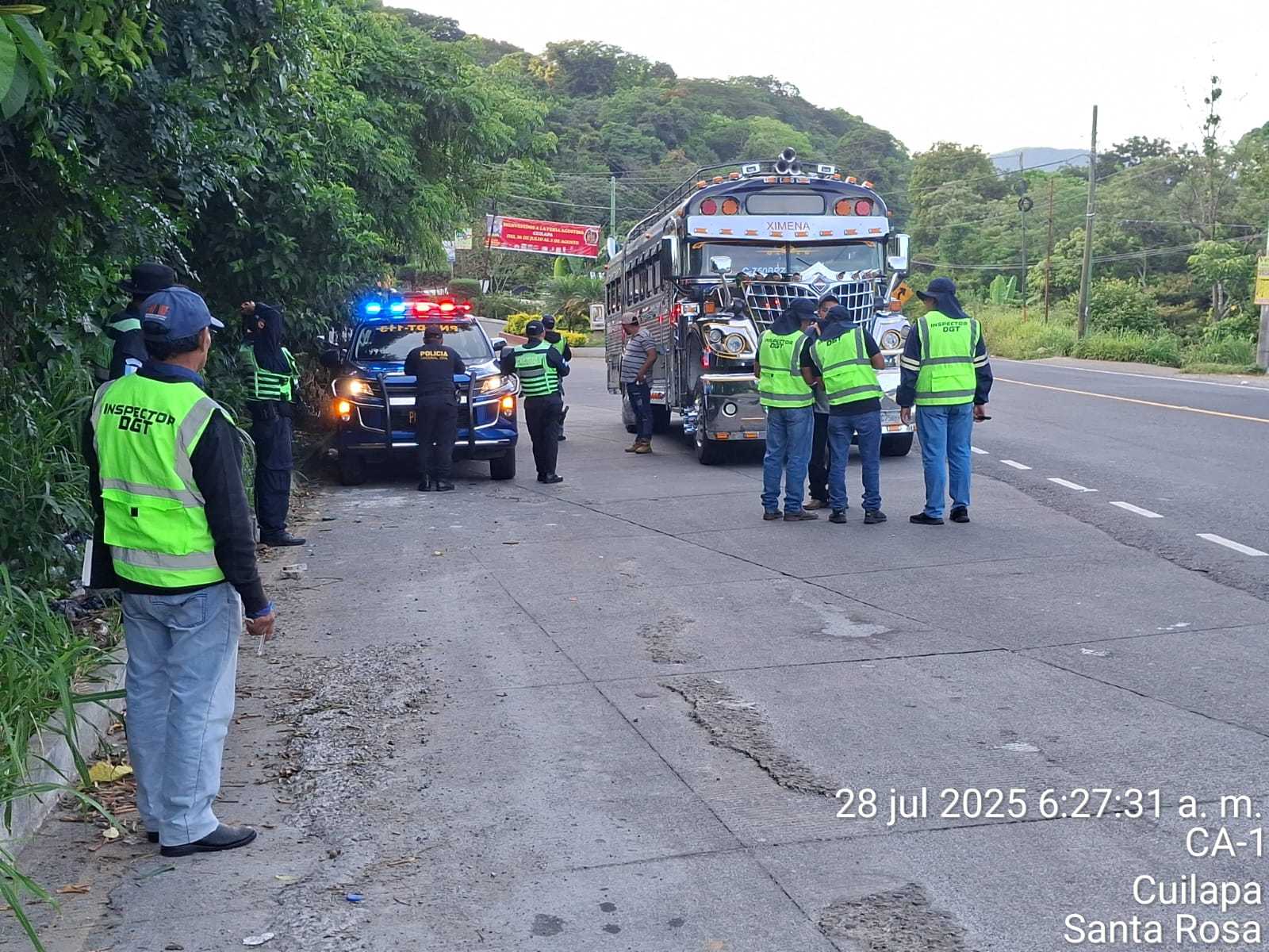 En una jornada de control y prevención, la Dirección General de Transporte (DGT), con el apoyo de la Unidad de Tránsito de la Policía Nacional Civil (PNC), desarrolló un operativo de inspección en el kilómetro 59 de la CA-1 Oriente, en jurisdicción de Cuilapa, Santa Rosa.